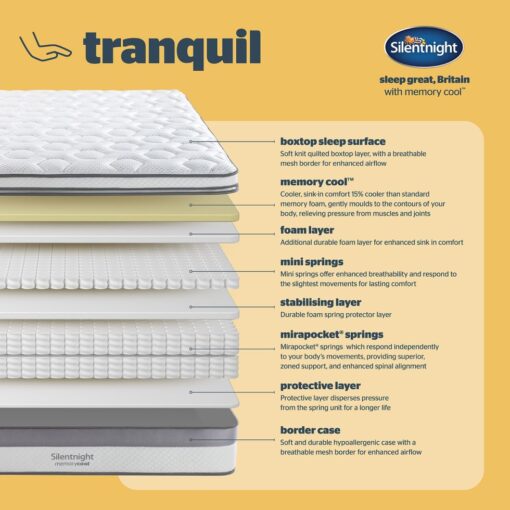 Enjoy a refreshing and revitalizing sleep each night with Memory Cool™, the mattress that cradles you to sleep. Enjoy the luxurious sink-in feeling of foam combined with graphite infused particles inside which absorb and dissipate heat from the body, making it 15% cooler than standard memory foam. Leaving you feeling chilled and restored.